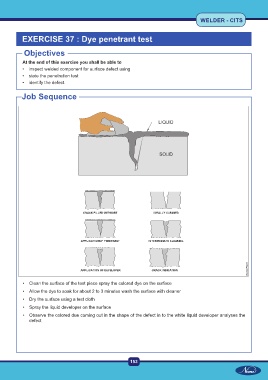 • Observe the colored due coming out in the shape of the defect in to the white liquid developer analyses the