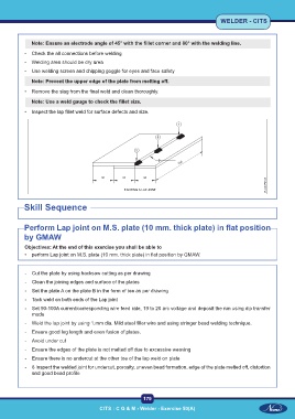 Perform Lap joint on M.S. plate (10 mm. thick plate) in flat position