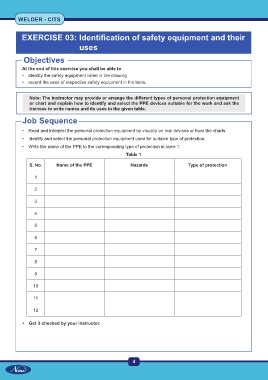 • Write the name of the PPE to the corresponding type of protection in table 1.