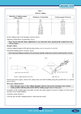 Hold the cutting blowpipe at 900 with the plate surface, and cut along the line (Fig 4)