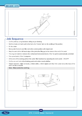 • Set the sheets and tack weld in the form of a “Corner” joint on the welding in flat position