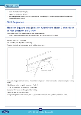 • monitor Square butt joint on Aluminum sheet 3 mm thick in Flat position by GTAW.