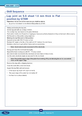 • lap joint on S.S sheet 1.6 mm thick in flat position by GTAW.