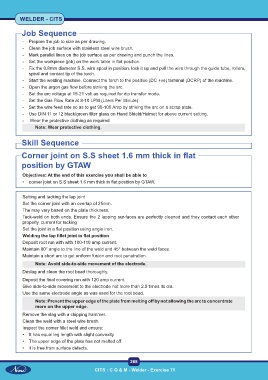 • Corner joint on S.S sheet 1.6 mm thick in flat position by GTAW.