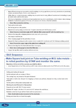 • make Square butt joint on Tube welding on M.S. tube metals in rolled position by GTAW and monitor the same.