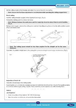 Hold the cutting blowpipe (nozzle) at the required bevel angle. (Fig 3)