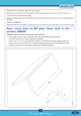 • deposit uniform covering layers in the corner joint using weaving of electrode and complete the weld