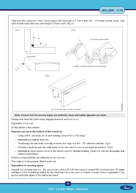 Tack weld the corner joint from inside using a MS electrode ø 3.15mm and 100 – 110 amps current range. tack