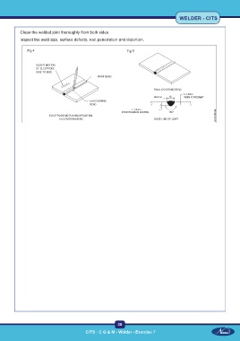 WELDER - CITS Clean the welded joint thoroughly from both sides. Inspect the weld size, surface defects, root penetration and distortion. Fig 4 Fig 5 39 CITS : C G & M - Welder - Exercise 7