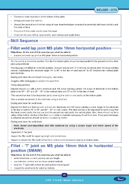 • prepare and weld lap joint on MS plate 10mm in horizontal position