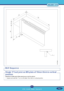 • prepare and weld fillet ‘T’ joint on MS plate 10mm thick in overhead position.