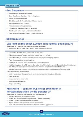 • prepare and weld lap joint on MS sheet 2.00mm in horizontal position.