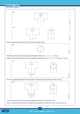 Draw the perpendicular lines from each point of the semi-circle of the view as shown in Fig 5.