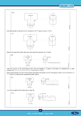 Join these points to get the line of intersection of “T” pipe as shown in Fig 7.