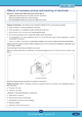 Storage of electrodes: The efficiency of an electrode is affected if the covering becomes damp.