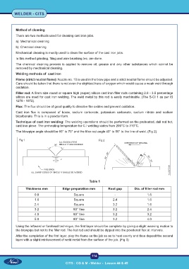 Thickness mm Edge preparation mm Root gap Dia. of filler rod mm
