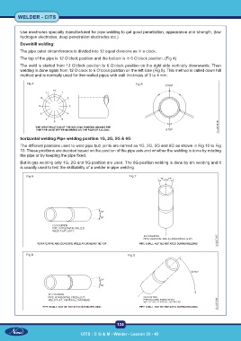 The different positions used to weld pipe butt joints are named as 1G, 2G, 5G and 6G as shown in Fig 10 to Fig