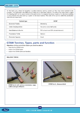 On the half cycle, where the tungsten is positive electron welding current will flow from base material to the