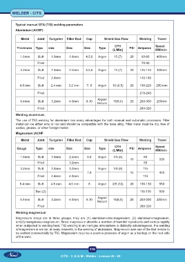 Typical manual GTA (TIG) welding parameters