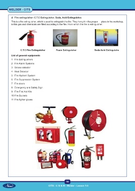 d Fire extinguisher- C.T.C Extinguisher, Soda, Acid Extinguisher.