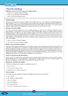 thermit is heated in a crucible above the work. While heat- ing, the lighter aluminium oxide slag rises to the top.