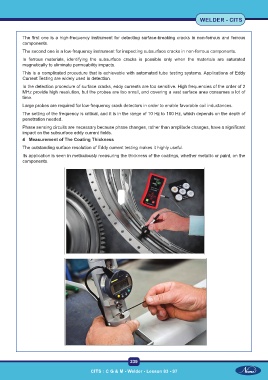 In the detection procedure of surface cracks, eddy currents are too sensitive. High frequencies of the order of 2