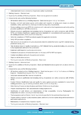• All functions carried out by a Welding Inspector - Basic level as given in A, b) 1 to 6 above and Welding
