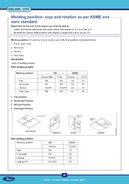 • illustrate the various weld positions with respect to slope and rotation as per I.S.