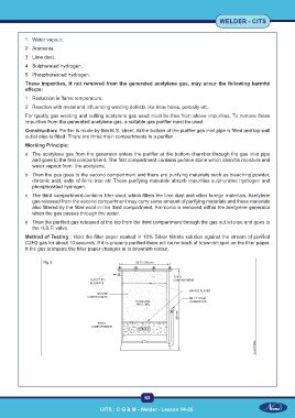 also filtered by the filter wool in this third comportment. Ammonia is removed within the acetylene generator