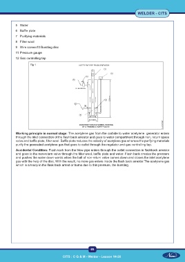 and goes to the non-return valve through the filter wool, baffle plate and water. Flash back creates the pressure