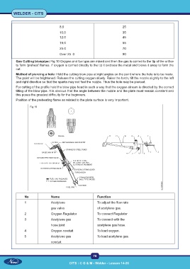 Method of piercing a hole: Hold the cutting blow pipe at right angles on the point where the hole is to be made.
