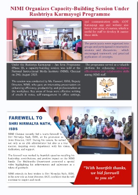 NIMI extends its best wishes to Shri Nirmalya Nath, ISDS, we bid farewell
